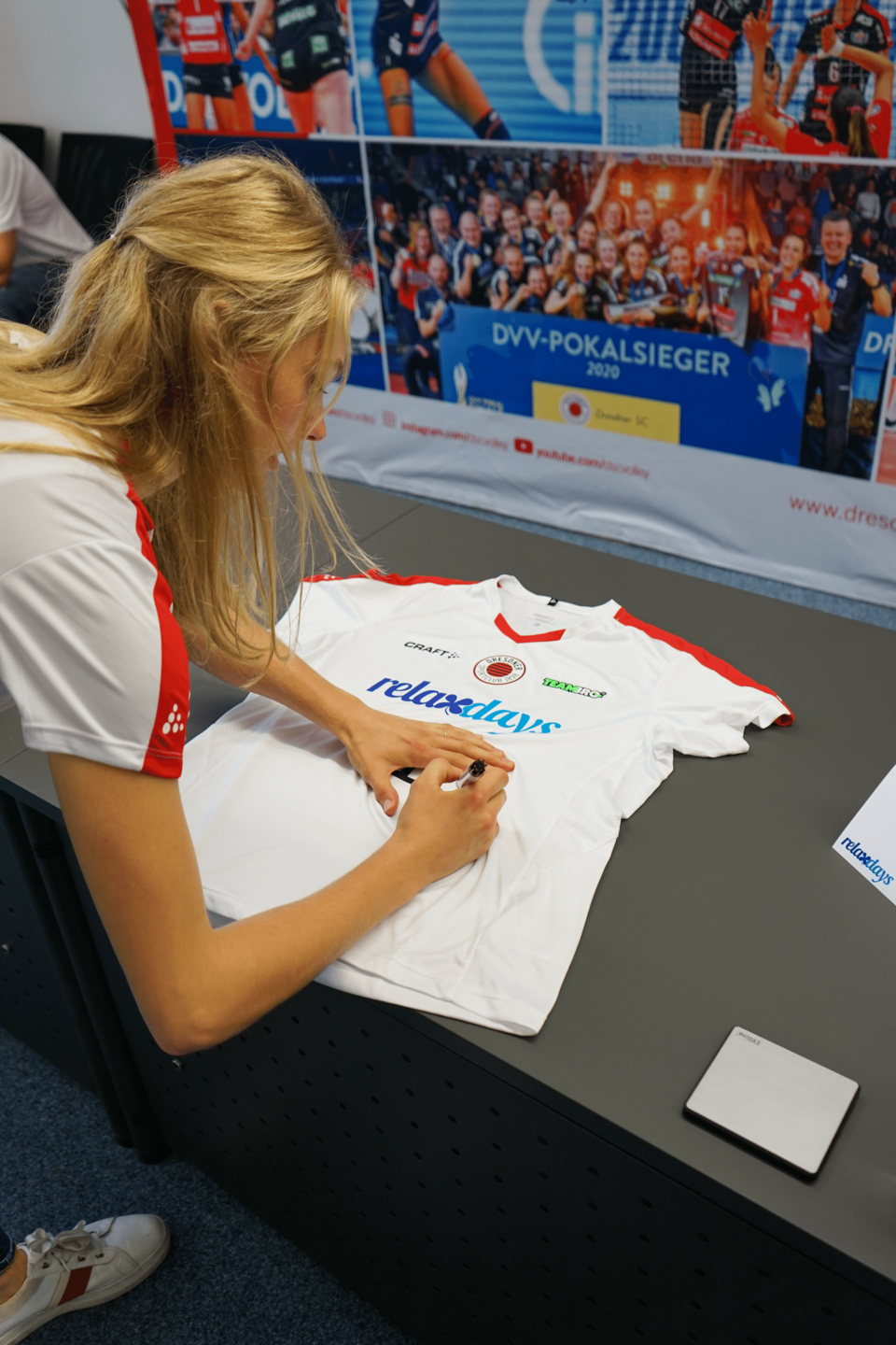 Heute wurde es in einer Pressekonferenz offiziell verkündet: Relaxdays ist neuer Trikotsponsor des DSC Volleyball Damenteams. Als einer der größten Sponsoren der Mannschaft soll eine langfristige Zusammenarbeit auf Augenhöhe angestrebt werden. Der DSC hat mit Relaxdays einen starken Partner in Rücken, der Verlässlichkeit bietet. Die Geschäftsführerin des DSCs Sandra Zimmermann sprach ihre Freude dazu aus und betonte, dass sie die Zusammenarbeit „extrem stolz macht“. Gemeinsam sollen verschiedene Projekte angegangen werden, von denen beide Seiten profitieren. „Wir freuen uns in der Familie dabei zu sein“ fasste Laura das Ganze zusammen.
