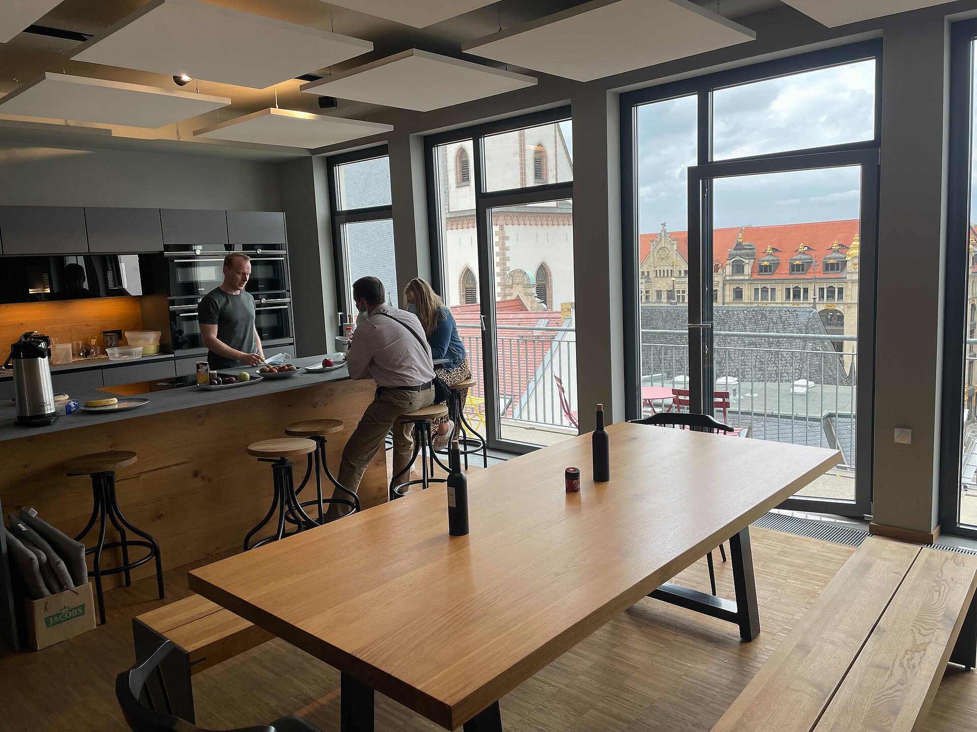 Typisch Relaxdays nehmen wir schnell richtig Fahrt auf. Beim ersten Besuch der neuen Kollegen tauschten sich Geschäftsführer Karel und HR-Managerin Jana mit Martin und dem Team in Halle aus. Anschließend ging es zur Logistikführung an den neuen Standort Großkugel und zu unseren Softwareentwikcklern in den Thomaskirchhof nach Leipzig.
