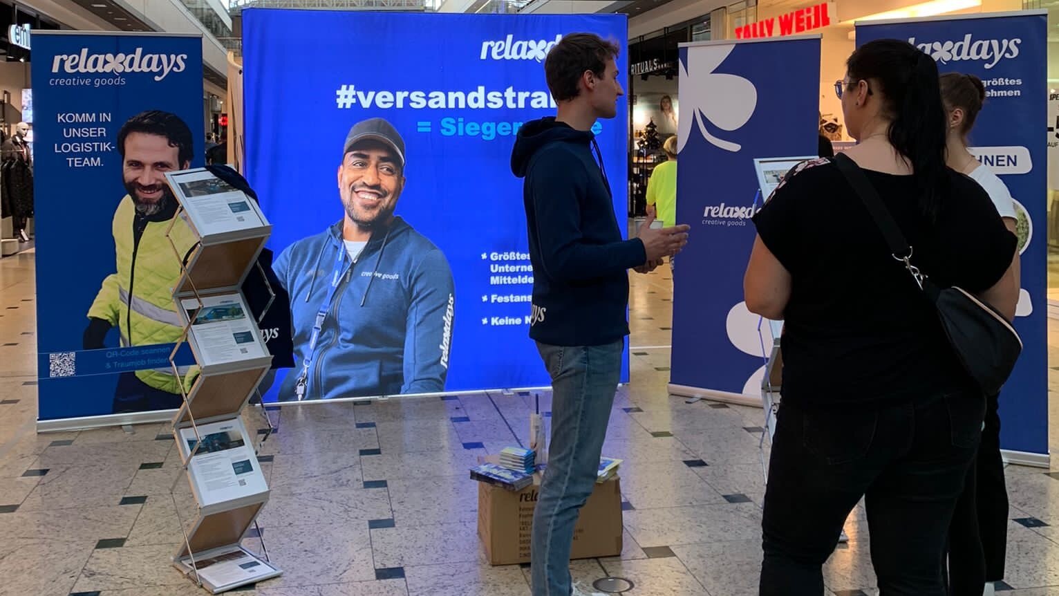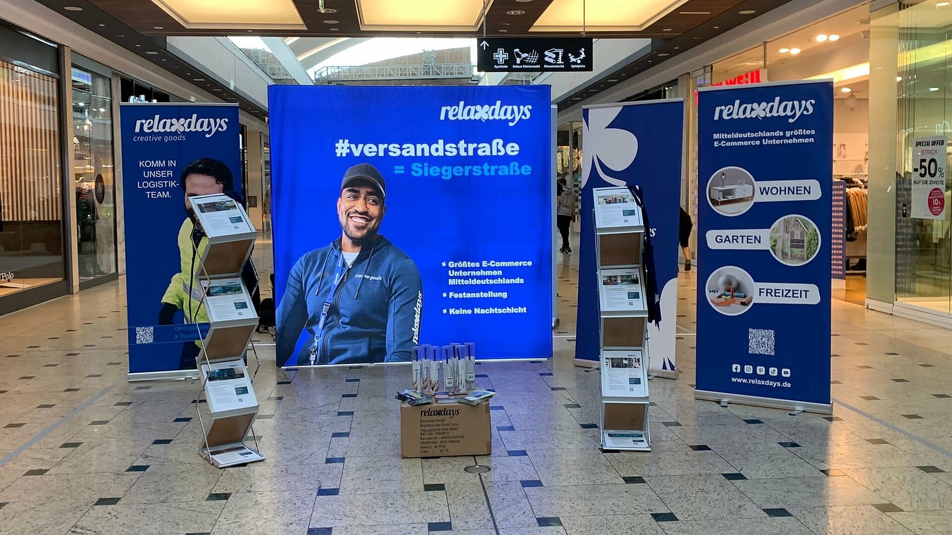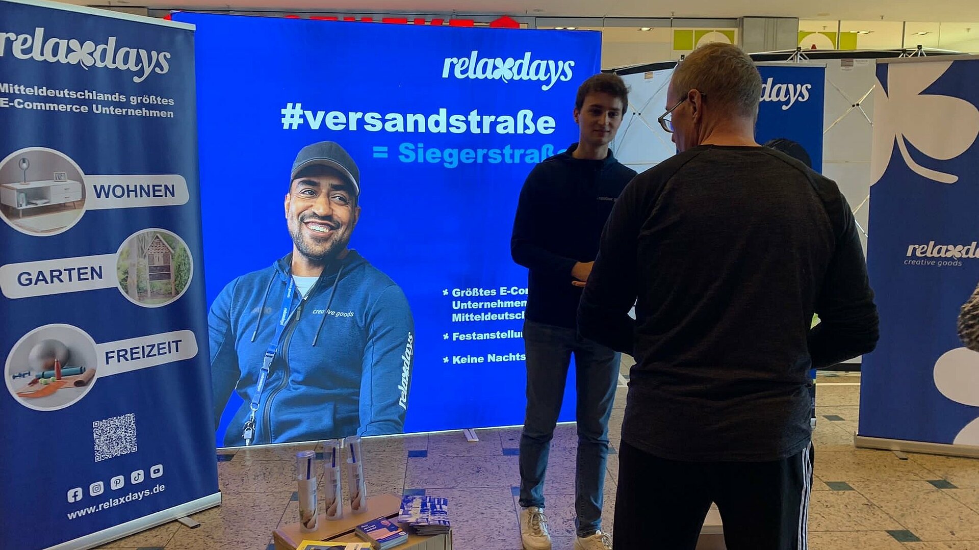 Das verlängerte Wochenende nutzten viele für einen Shopping-Ausflug in das Nova Eventis Einkaufszentrum in Günthersdorf. Neben dem Schaufenster-Bummel stand die Ausbildungs- und Jobmesse mit über 50 Unternehmen aus der Region im Fokus. Die teilnehmenden Firmen präsentierten sich im Einkaufszentrum und kamen mit Interessierten ins Gespräch. Relaxdays konnte sich den besten Platz im Nova ergattern und war kaum zu übersehen. Vor allem Schüler und Schülerinnen kamen mit Fragen zu unseren Ausbildungsberufen auf uns zu. Aber auch Berufserfahrene auf der Suche nach dem Jobwechsel interessierten sich für unsere freien Stellen. Aktuell sind wir für unser Versandzentrum Großkugel besonders auf der Suche nach Fachkräften im Bereich Lagerlogistik. Neben Bewerbern mit Logistikerfahrung sind wir auch Quereinsteigern gegenüber sehr offen. Eingesetzt werden unsere neuen Kollegen vor allem im Wareneingang, in der Kommissionierung und im Paketversand.