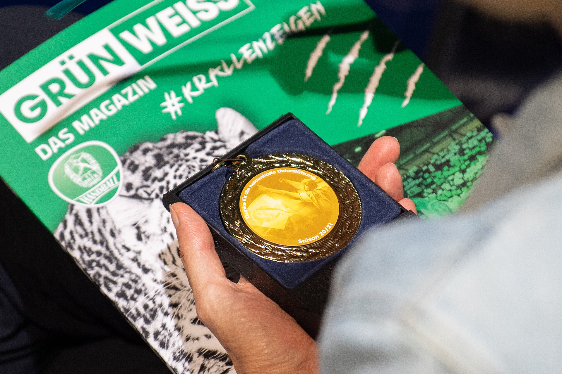 Im Rahmen der Veranstaltung wurde die letzte Saison und die Corona-Situation reflektiert. Mit goldenen Medaillen bedankte sich der Verein bei den anwesenden Sponsoren und Partnern für die Unterstützung während der schwierigen Phase der Pandemie. Der SC DHfK kann nun langsam wieder aufatmen: Mit einem speziellen Hygienekonzept ist es möglich, endlich wieder vor 5.000 Zuschauern in der ARENA zu spielen. Das ist auch für Trainer André Haber besonders wichtig: „Handball macht besonders Spaß, wenn 5.000 oder auch 10.000 Menschen feiern“. Ob sich die Halle wieder so wie gewohnt füllen wird, bleibt noch abzuwarten. Mit dem Satz „es wird nicht alles perfekt sein, aber es wird geil“ fasste Geschäftsführer Karsten Günther die Erwartungen an die neue Saison zusammen.